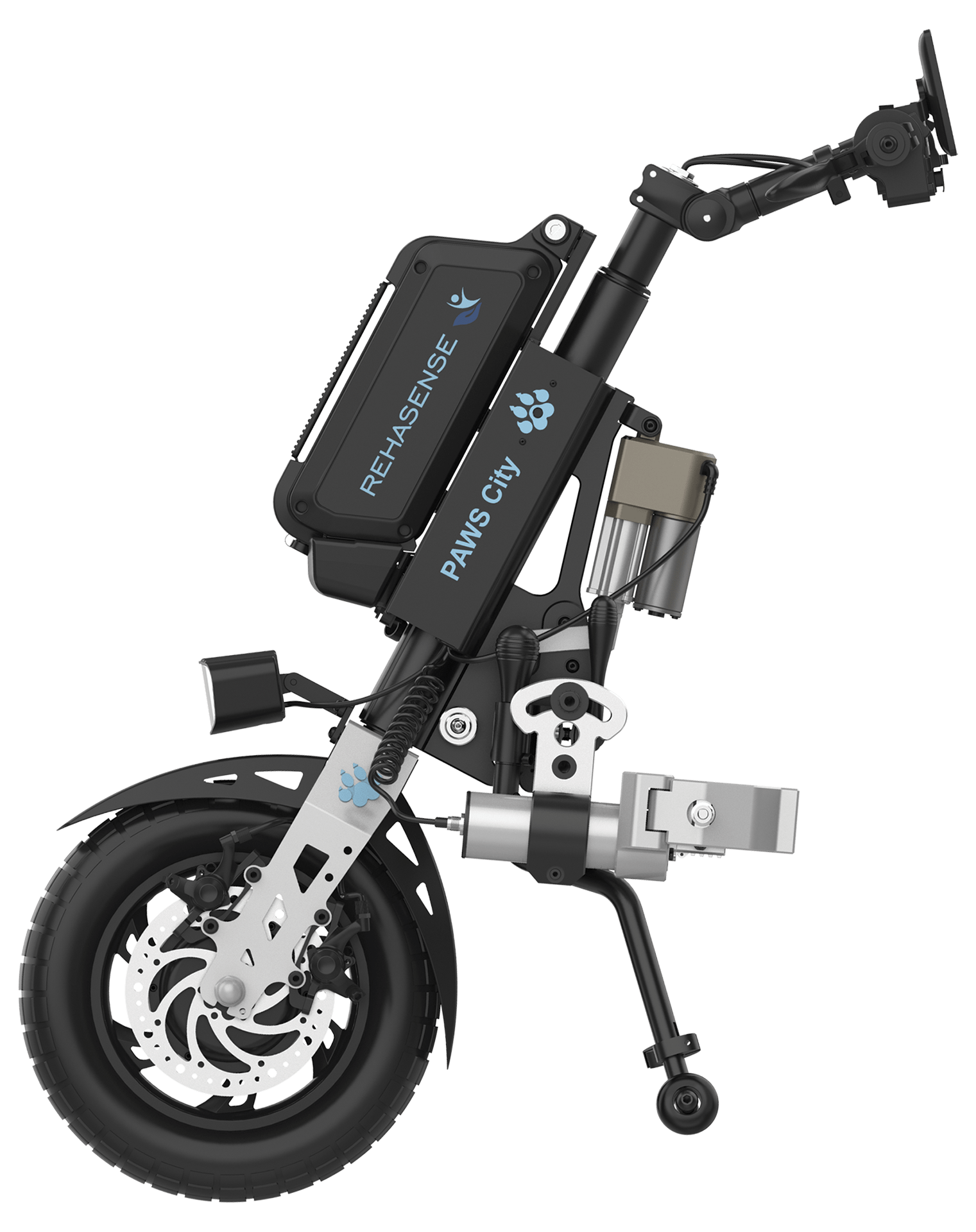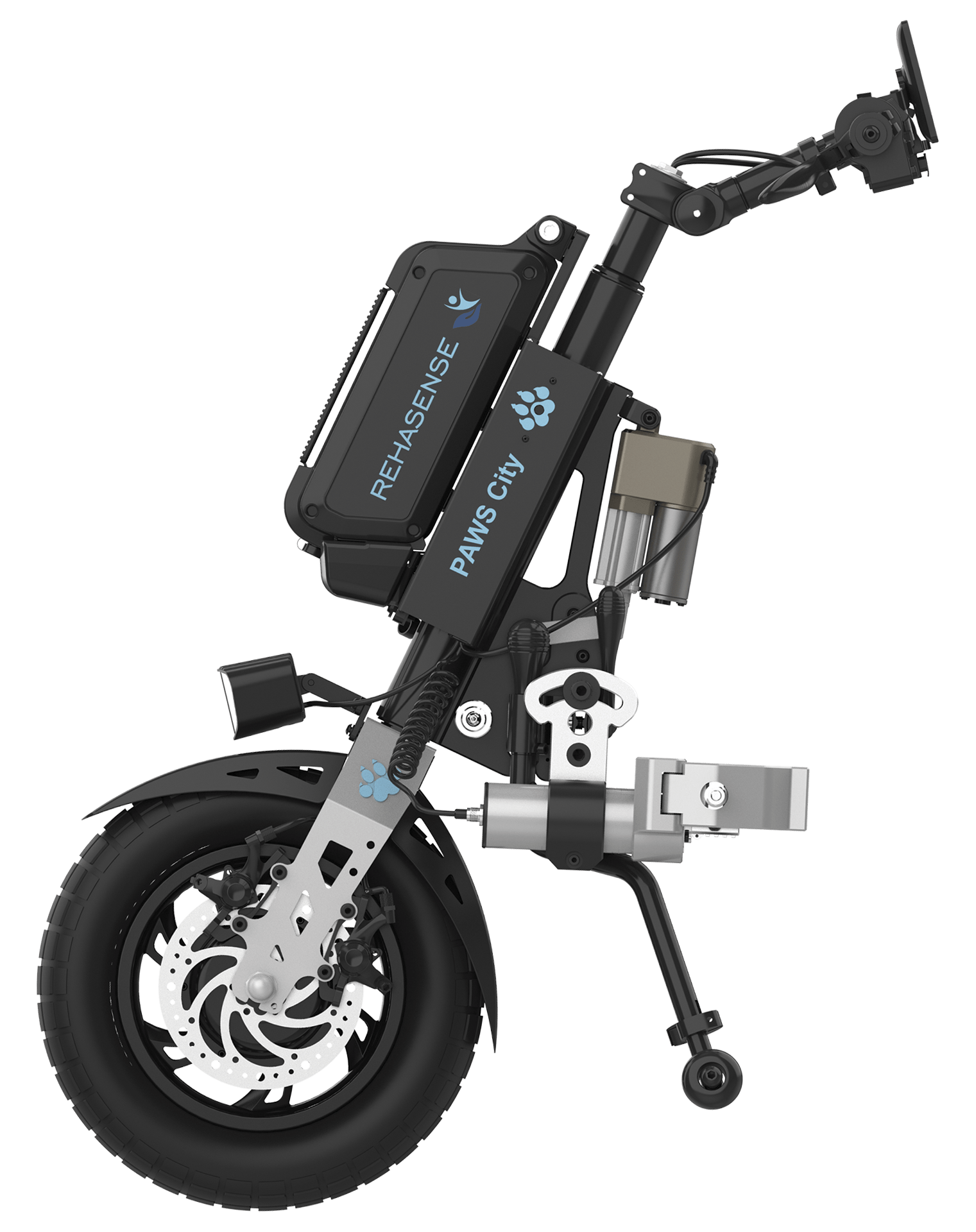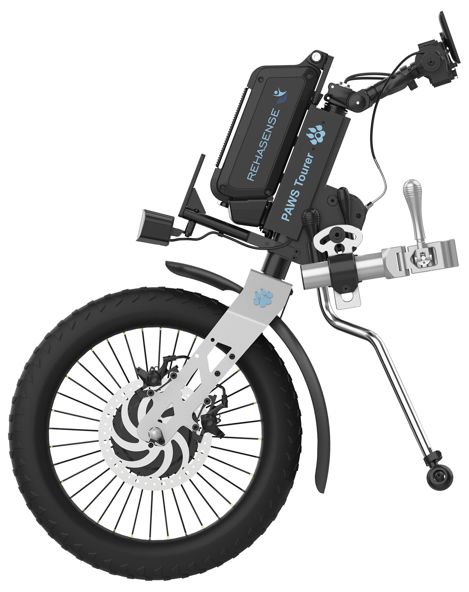 PAWS boasts exceptional compatibility, to integrate with almost all wheelchairs on the market thanks to a variety of clamps.